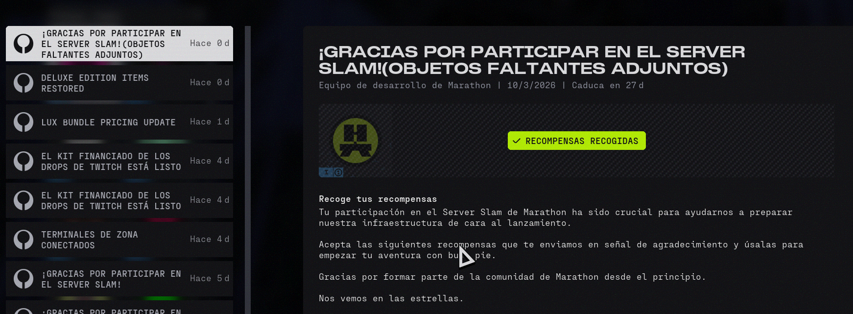 We are aware of issues involving Server Slam rewards and Twitch Drops not being granted correctly and are currently investigating.