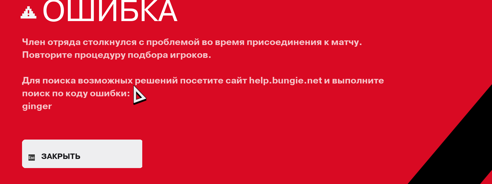 We understand you're encountering error code Ginger. This error happens when another player gets disconnected from matchmaking, and occurs so as to prevent the crew from entering a match without enough players.