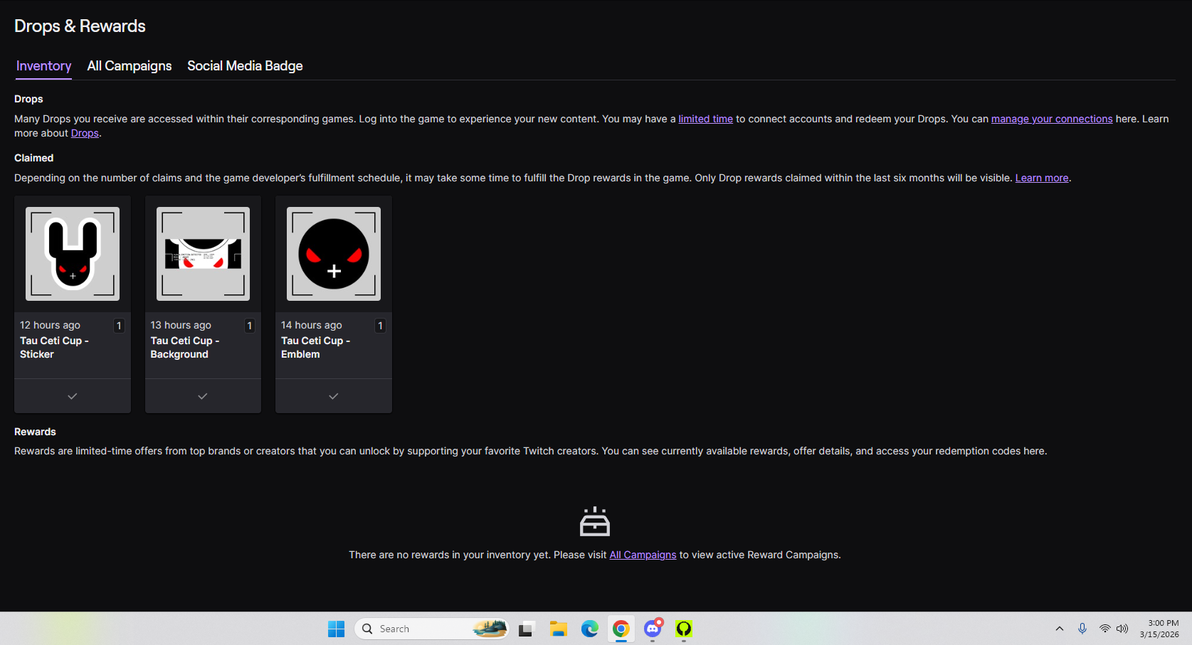 Hello, I linked my Twitch account to claim the Tau Ceti Cup Twitch Drops, but I still haven’t received anything in-game. I connected both my Twitch and Steam accounts on the Bungie website, and I also tried unlinking and linking them again, but the rewards still haven’t appeared. Could you please help me resolve this issue?