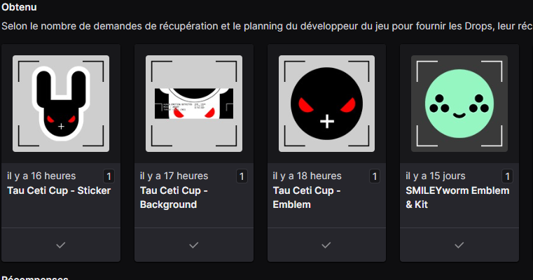 Still don't have the Silkworm and TauCeti Cup rewards from twitch.