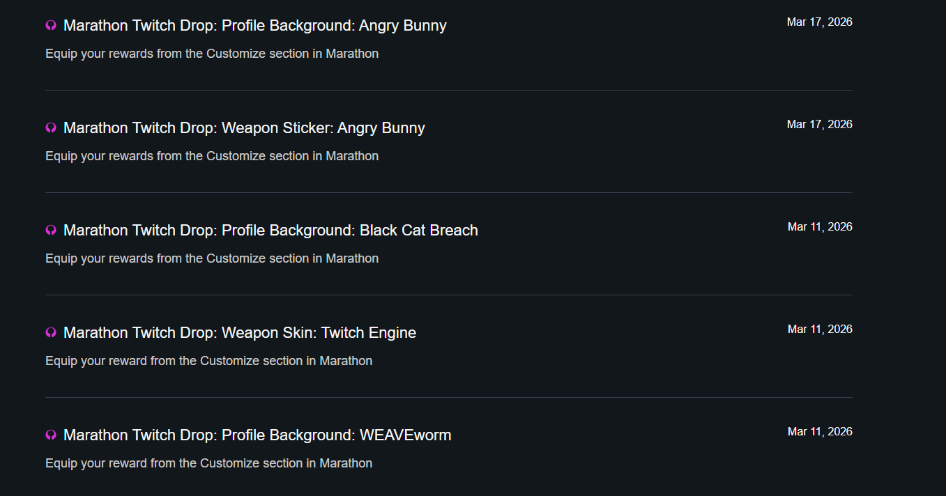 I purchased an in-game accessory in Bungie Marathon, but it has not appeared in my account yet. The payment was completed successfully, however the accessory is still not showing in the game.