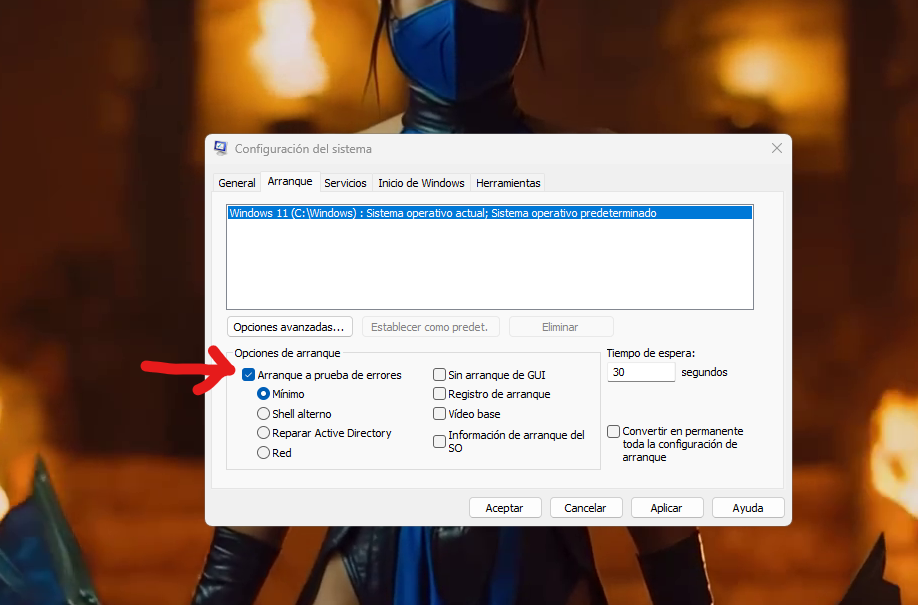 Open msconfig again and disable Safe Boot so Windows returns to normal startup mode.