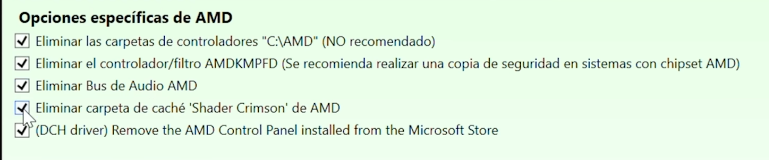 c.In DDU Options, enable all options that are specific to AMD only.