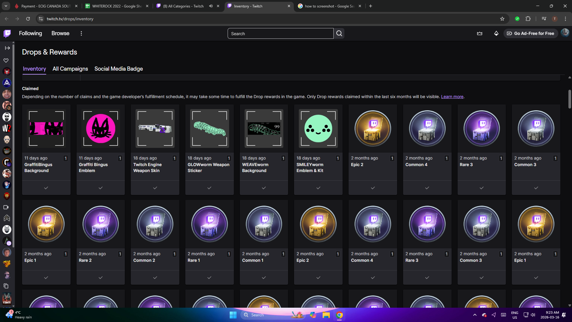 If the Twitch Drop doesn't appear, log in to Twitch's website and view your Drops Inventory to see all the Drops you've earned. Click on the "Claim" button on any Marathon Drops that have that option below them, go back to your Partner Rewards area, and click the "Refresh" button to get the Drop to appear.