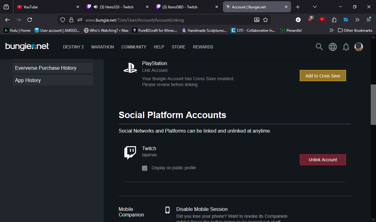 I have also ensured that my bungie account Tajamas#5626 is currently and actively linked with my twitch account tajamas
