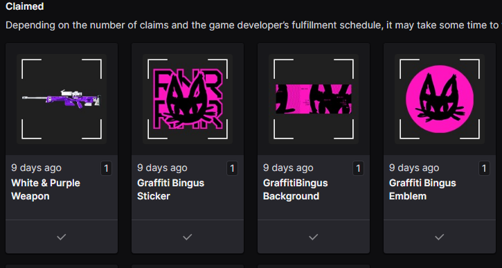 Hello there, these 4 twitch drops have still not been added to my account, I appreciate all help you can provide