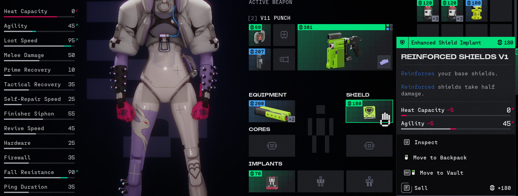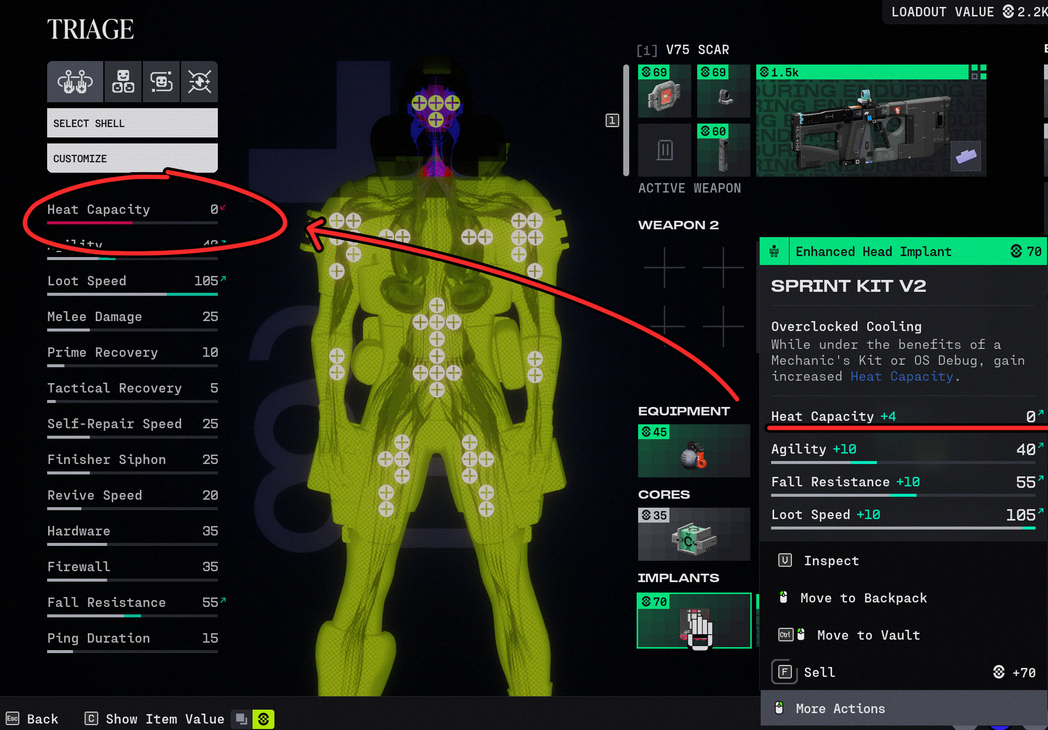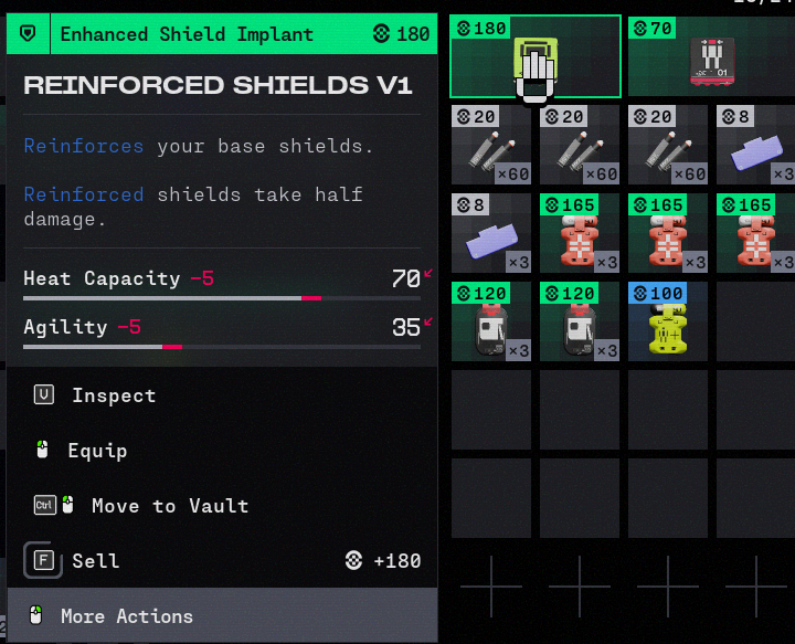 To add more details to this issue, it seems to be repeatable by wearing both the Sprint Kit V2 and a Reinforced Shield V1. when equiping the Sprint Kit V2 and having the Reinforced Shield not equiped the -5 heat capacity stat is not displayed, and vice versa. When both are equiped at the same time it will drop your heat capacity down to 0.