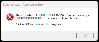 That dialog is a generic Windows access-violation crash: the game tried to read from memory address 0x0 (null) while shutting down. It doesn’t usually mean anything is wrong with your hardware or files, especially if it only happens after you’ve already exited a session.