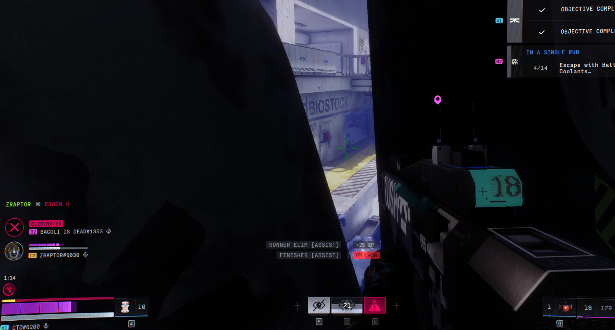 Was ontop of the middle area in biostock and when enemies ran inside i went over to kill them and fell through the object leading me to be stuck all game, i tried to down myself and reconnect to see if itll push me out but no luck. i dont mind bugs like this since the games new but im just hoping to get my items i had on me back if possible. (my team extracted 90m away so i know i wouldve survived the run)