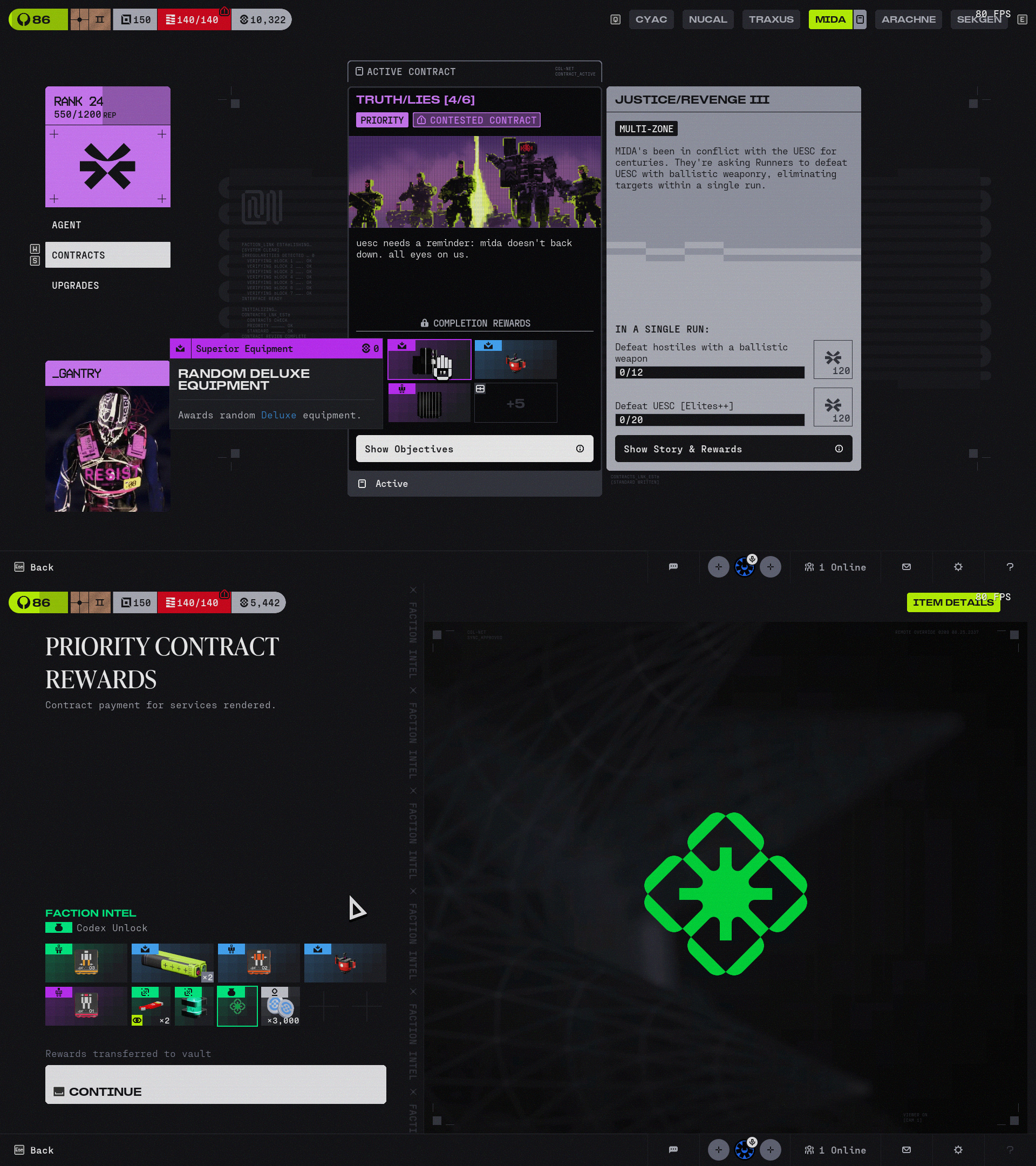 Description: Priority contract Truth/Lies [4/6] is previewing incorrect reward rarity. Redacted item type and colour coding is for Superior items, however there are no Superior rarity Equipment in the game. Long description still correctly says "Awards random Deluxe equpiment".