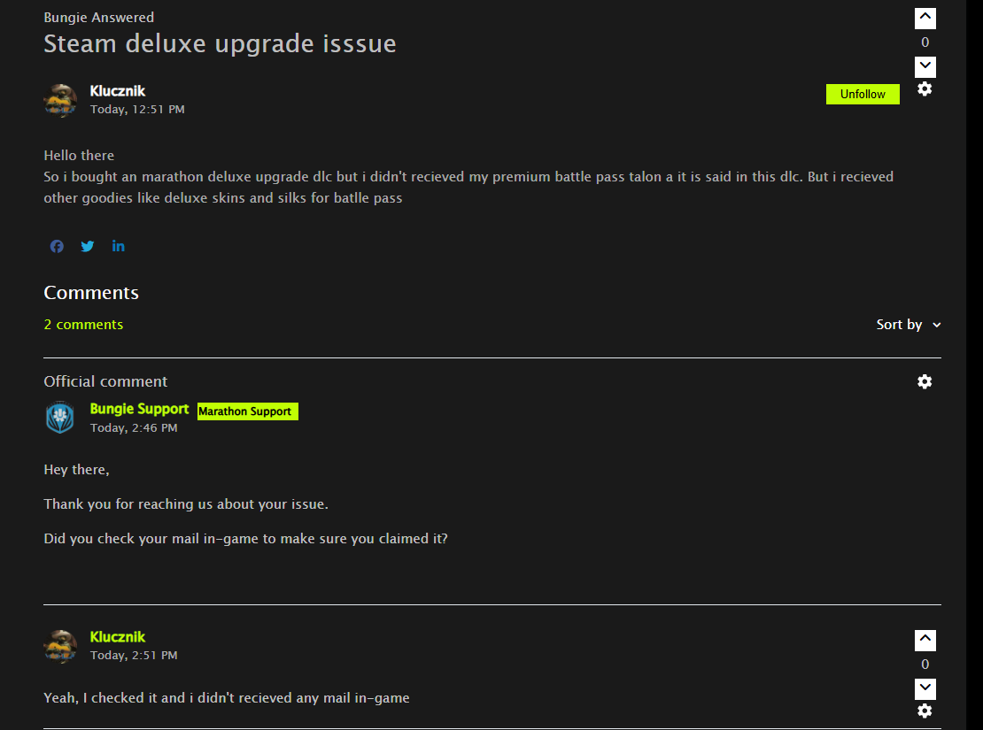 I recieved an answer and answered to this but still i don't have my battle pass talon. In game mail is still empty as it was and nothing happened