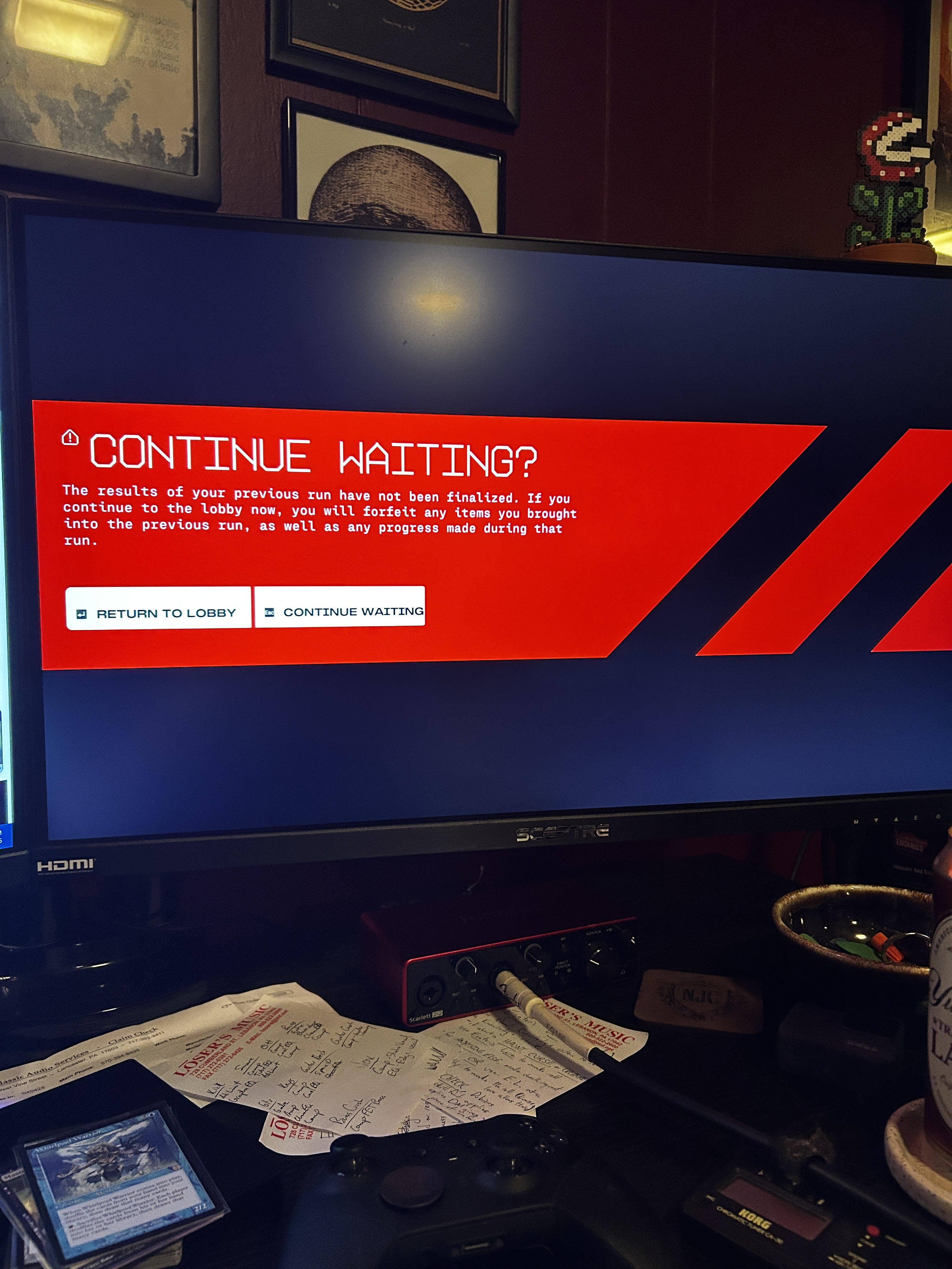 My team and I were disconnected from a run on Cryo Archive about an hour ago. We could not move but could still shoot. The enemies were not taking any damage from our shots and then we all disconnected and go this screen. No matter how many times we refreshed, it would never reconnected and we lost everything we dropped in with and collected. I was playing on Steam and they were playing PS5.