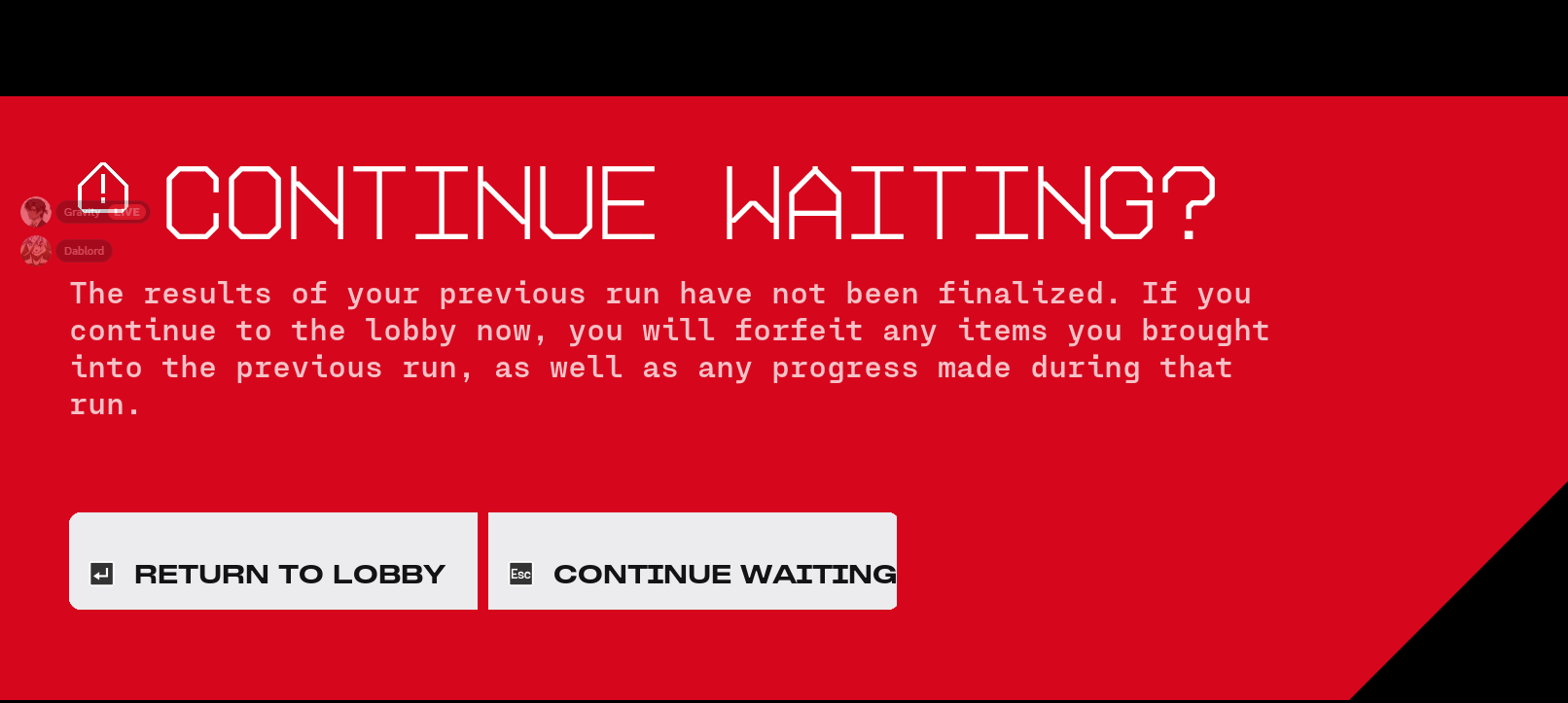 Me and my duo ran our 1st cryo run and the server crash almost immediately after starting the run. it would not let us join back into the lobby. is there any way to get our gear back?