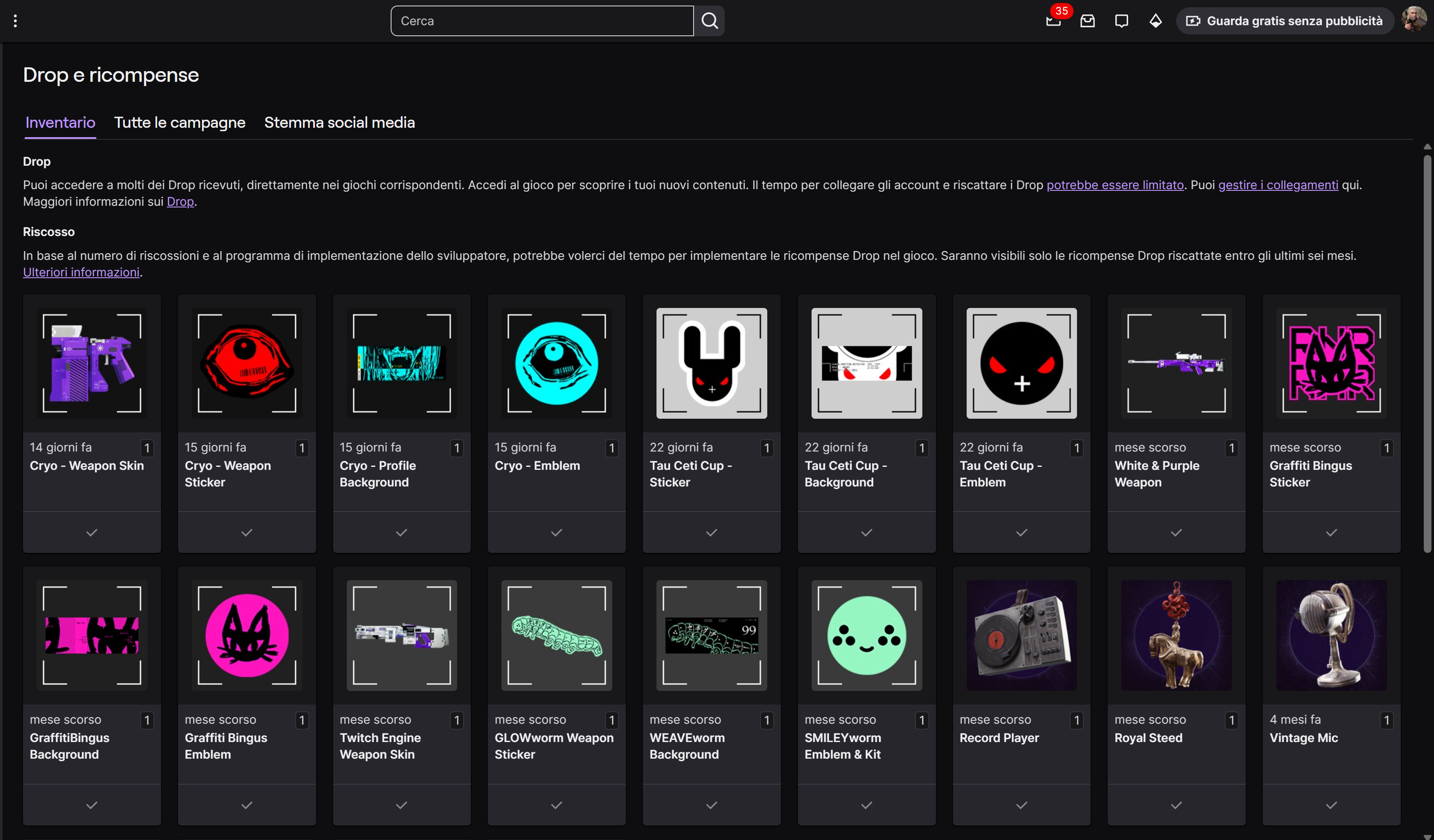 Missing most of Twitch drops, two weeks after claiming
