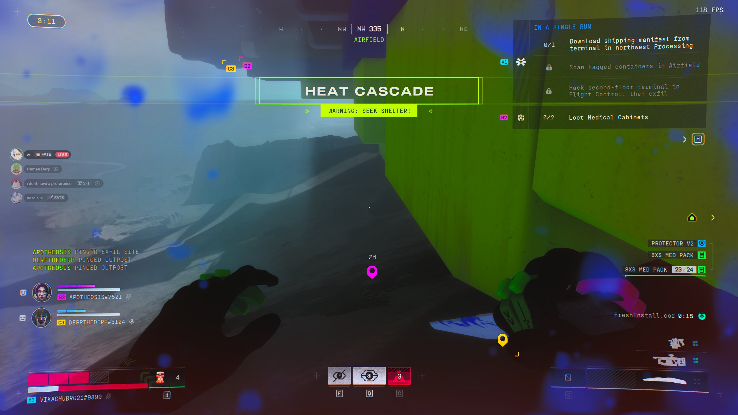 We are aware of issues on the Outpost map where in some spots, when a runner dies out of bounds, their body or bag can end up below/behind the playspace and become unrecoverable, which also blocks reboot/res for that player. We are currently investigating this issue.