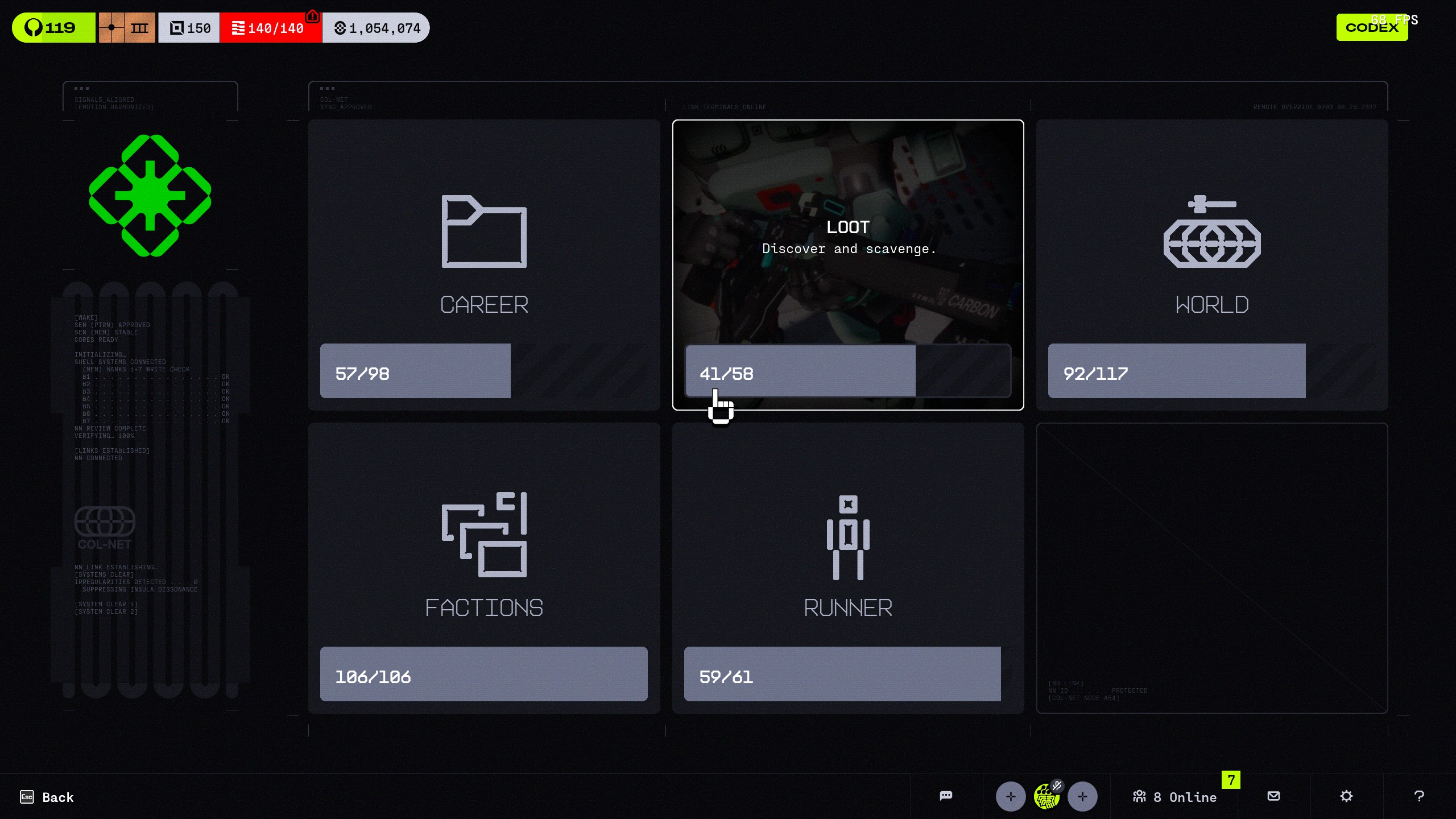 - Description of Issue - The "Loot" tab in the Codex is not properly counting unlocked entries under its sub-tab "Combat Utility," causing it to read as 44/58 for players with all of the "Loot" entries unlocked.