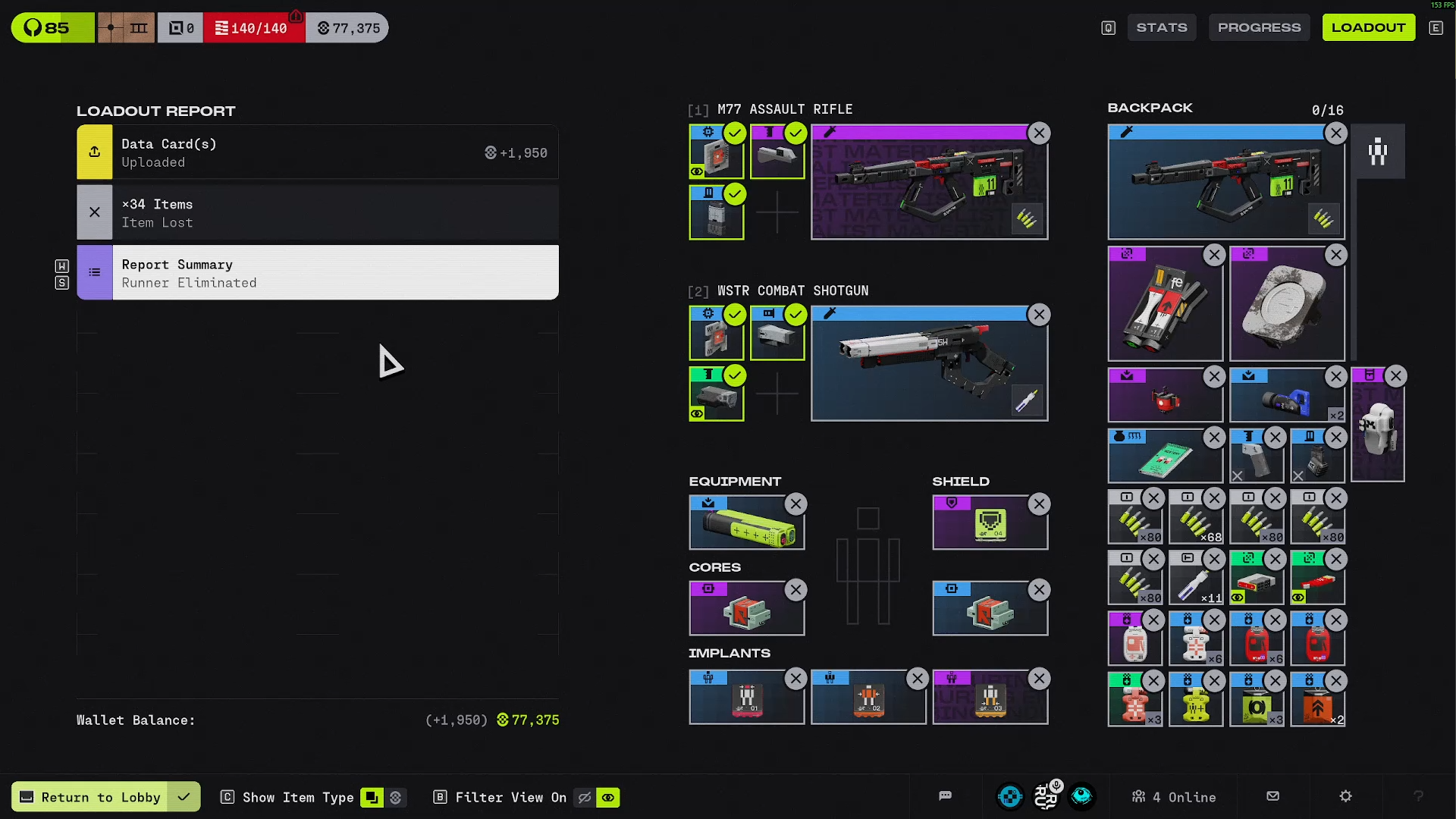 Included is a video clip of us looking for the final exfil and screenshot of the lost gear.