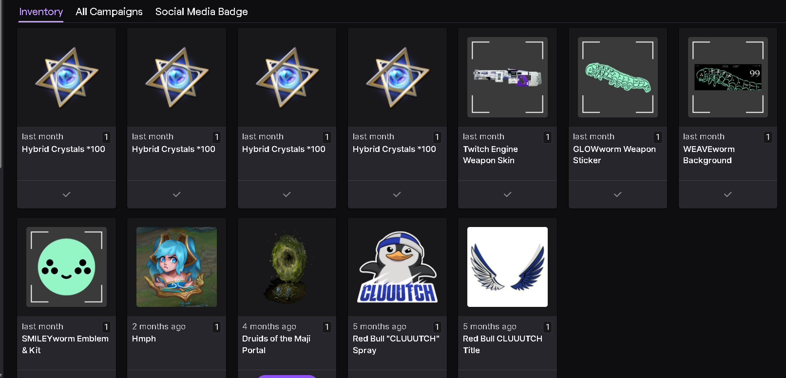I'm still missing just the single WEAVEworm background from the Twitch drops that I have never received on my account. I received the rest of the drops after a previous reply to a post but would still like to have this last one please.