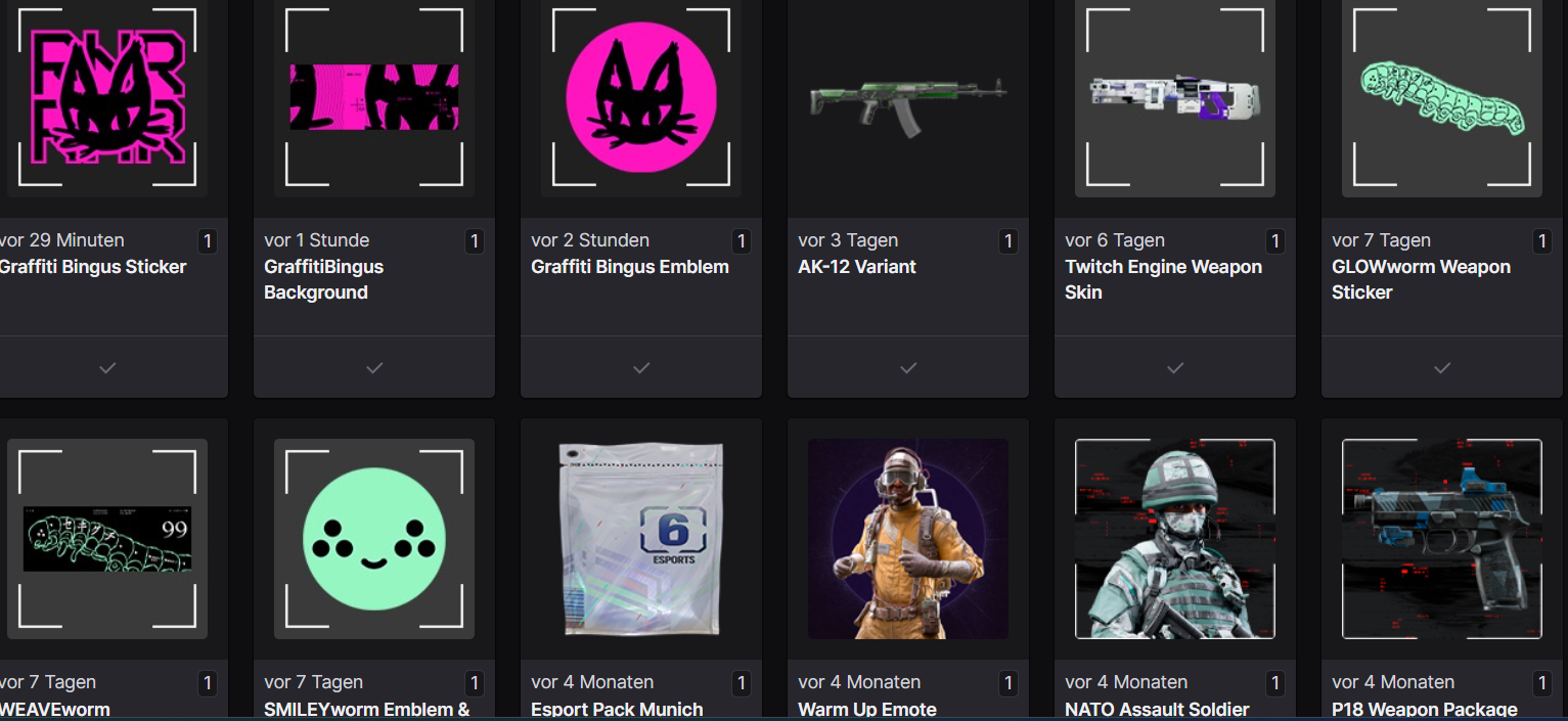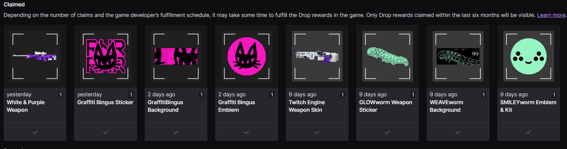 According to my Twitch inventory, I successfully claimed the following drops: