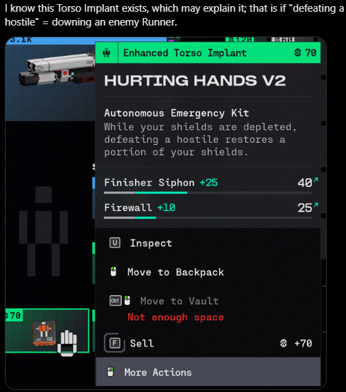I can't find any core or implant that allows this to happen. I can't seem to replicate it. I only noticed it after the fact, and I have no idea what I was running. You can see a quick screenshot of my build at the end, but no details. All green stuff. And I think this was during the server slam, not the full game...Clip is below via Twitter/X.