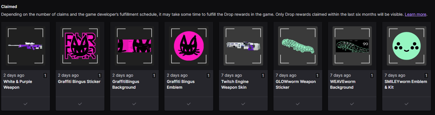 When I actually began playing Marathon I linked my Twitch account at that time and also noticed that another set of Twitch drops were now available. I watched the streams and claimed those as well.