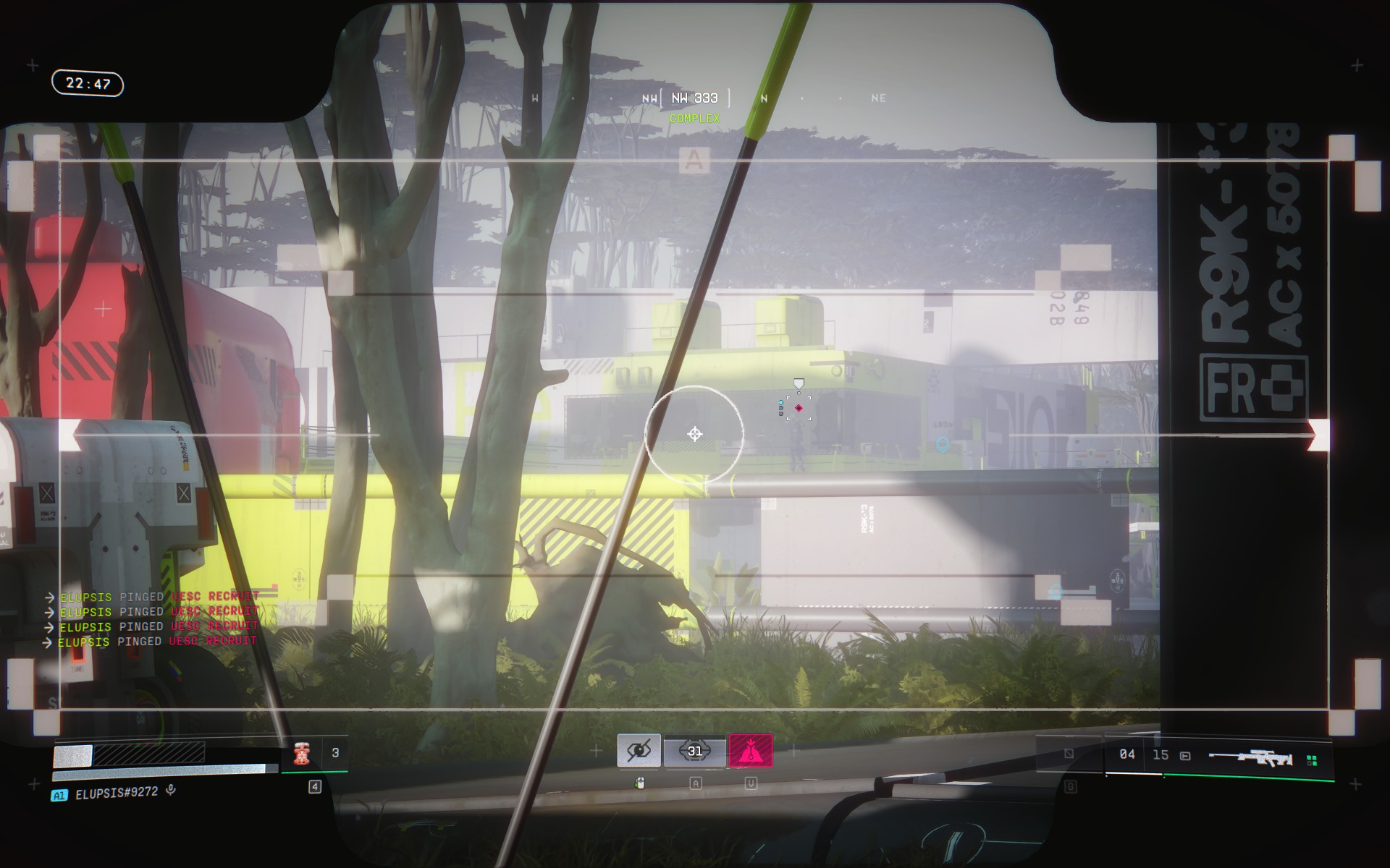 (There is great fog on the screen but on my crosshair is the other UESC unit at this moment)