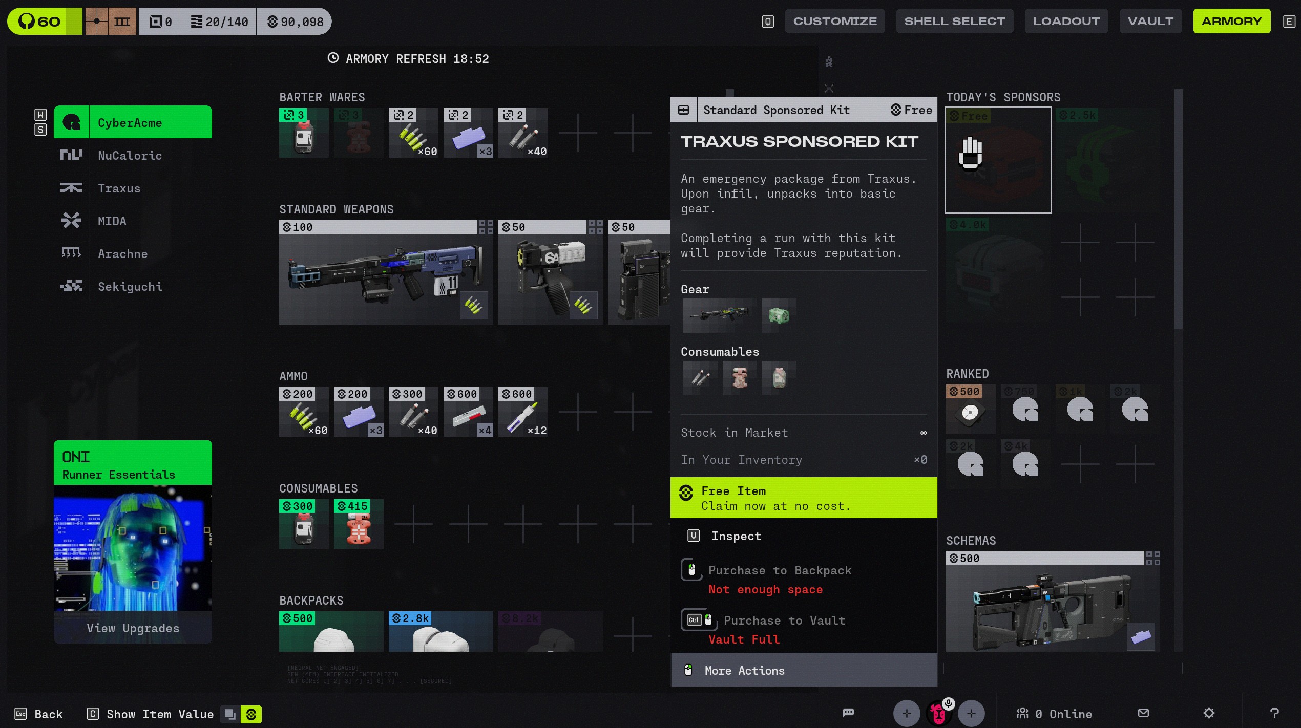 - attached is an image of the codex and my loadout upon xfill, and the free kit I have in the shop