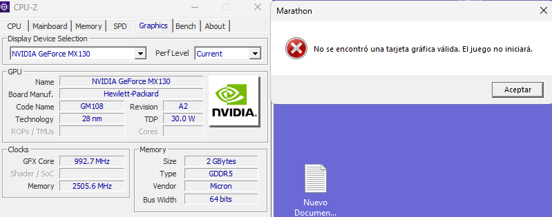 as the title say, Geforce mx130, 2gb, with intel core 5-8265u with 16gb ram ddr4 so-dimm. Cant find the graphics card and run the game