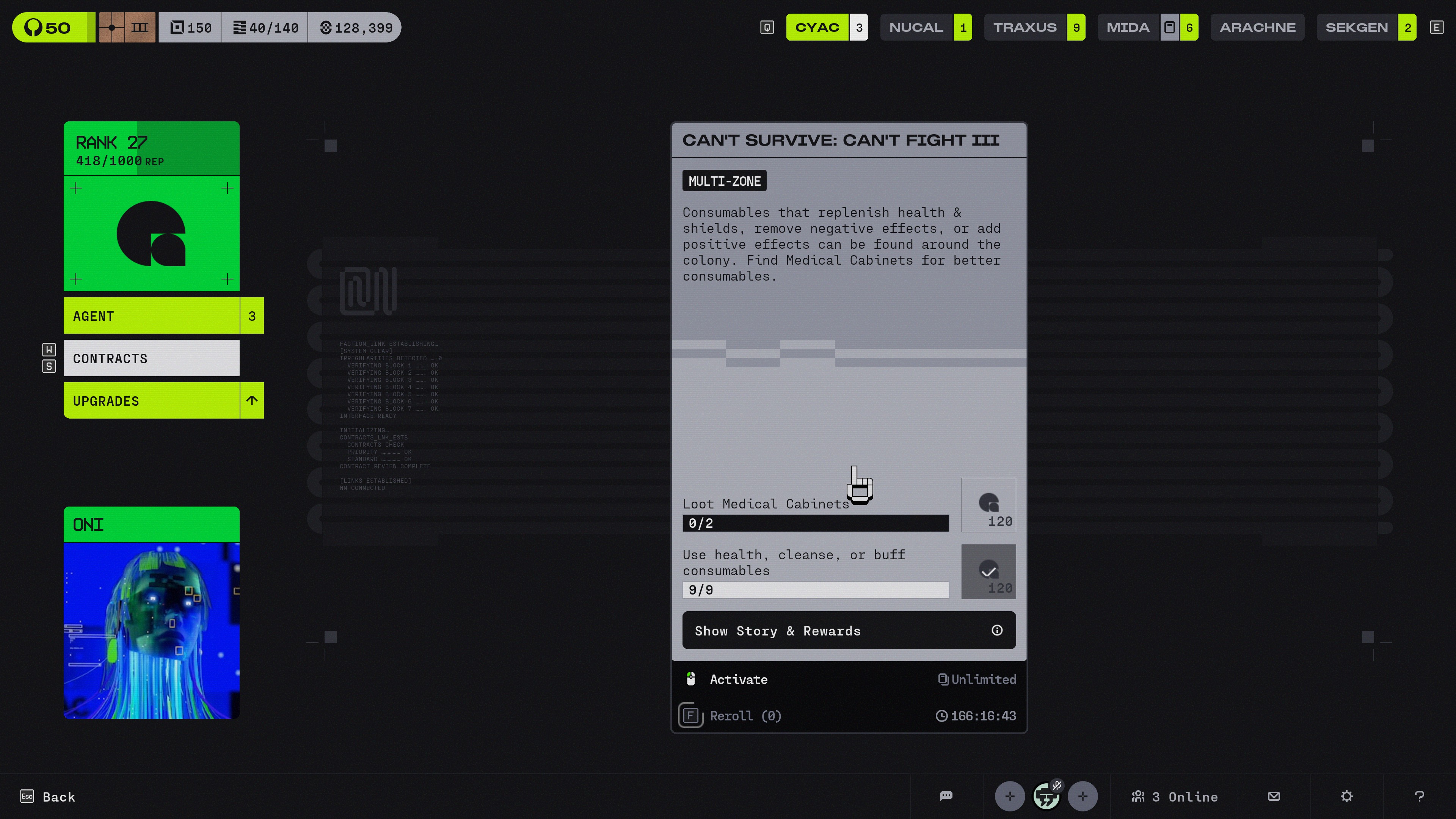 - Repro steps - Use all rerolls, do not complete active contract, wait for refresh timer to expire. Now all my factions are bugged.