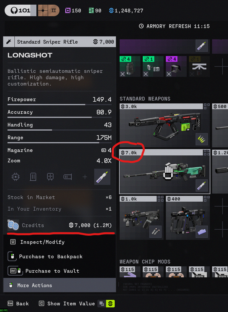After 1.0.6 update, Longshot price has been increased to 7000 credits, it seems Longshot and Outland have swapped price, with Longshot costing 7000 and Outland costing only 3000