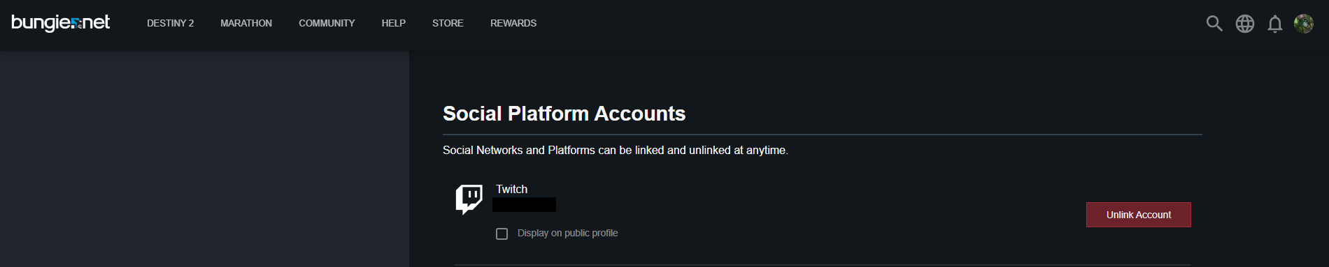 3. Twitch Account properly linked in Bungie.net Account Linking section. (Twitch username is redacted for privacy, if needed I can provide it directly to a Bungie employee)