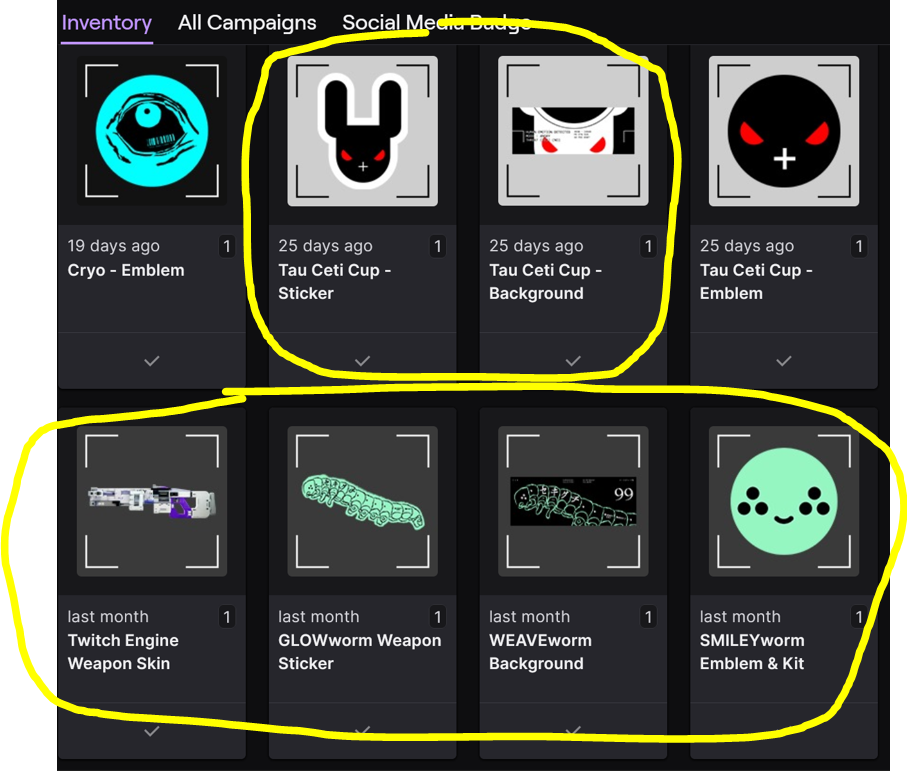 Hey again I reached out to twitch as well and has advised there showing up as claimed on there end. so I don't know, I've circled the ones in the screen shot that were missing.