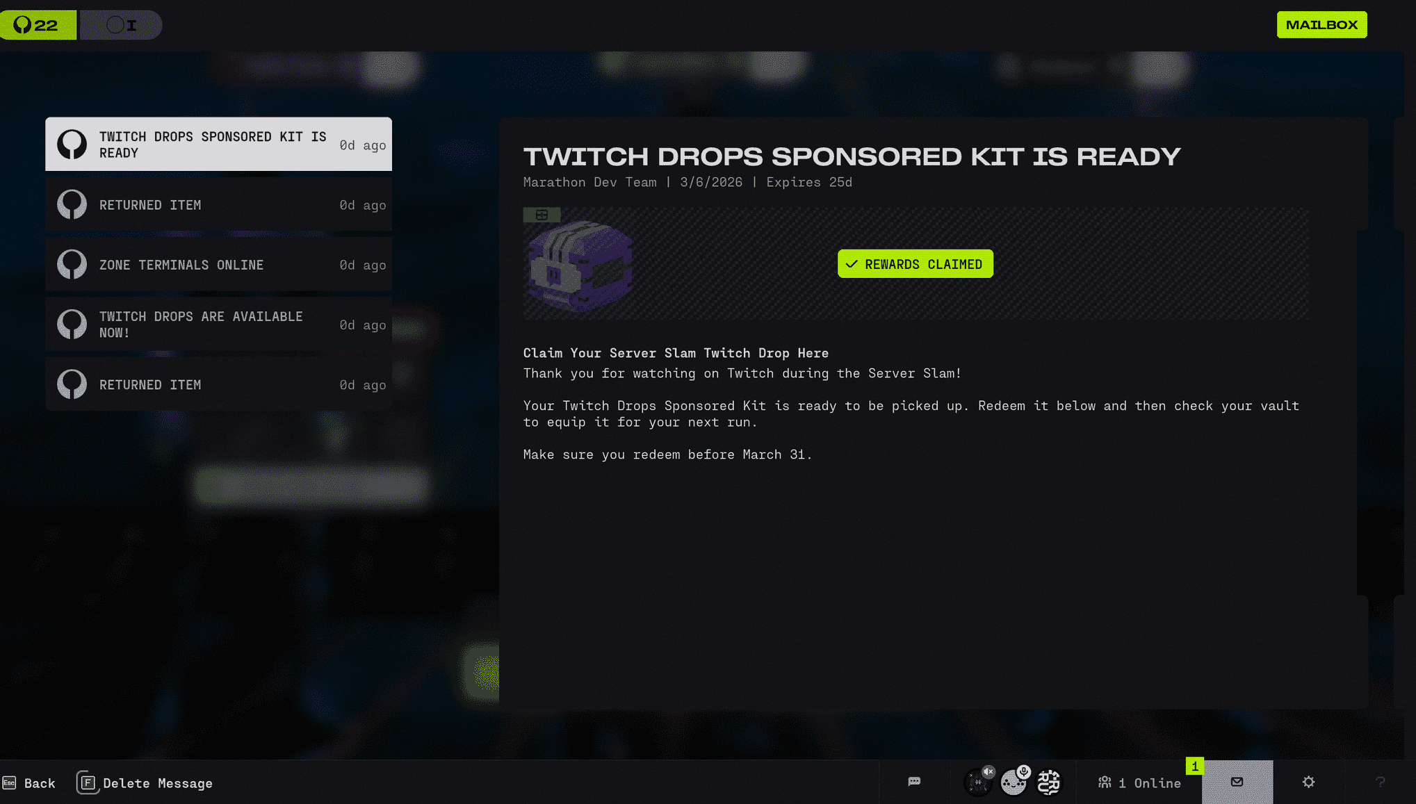 I've received this twitch drop sponsor kit twice in my mail but both times I've claimed it i haven't gotten anything in my vault i don't know if its because i was overflowing but still it doesn't appear in my overflow either