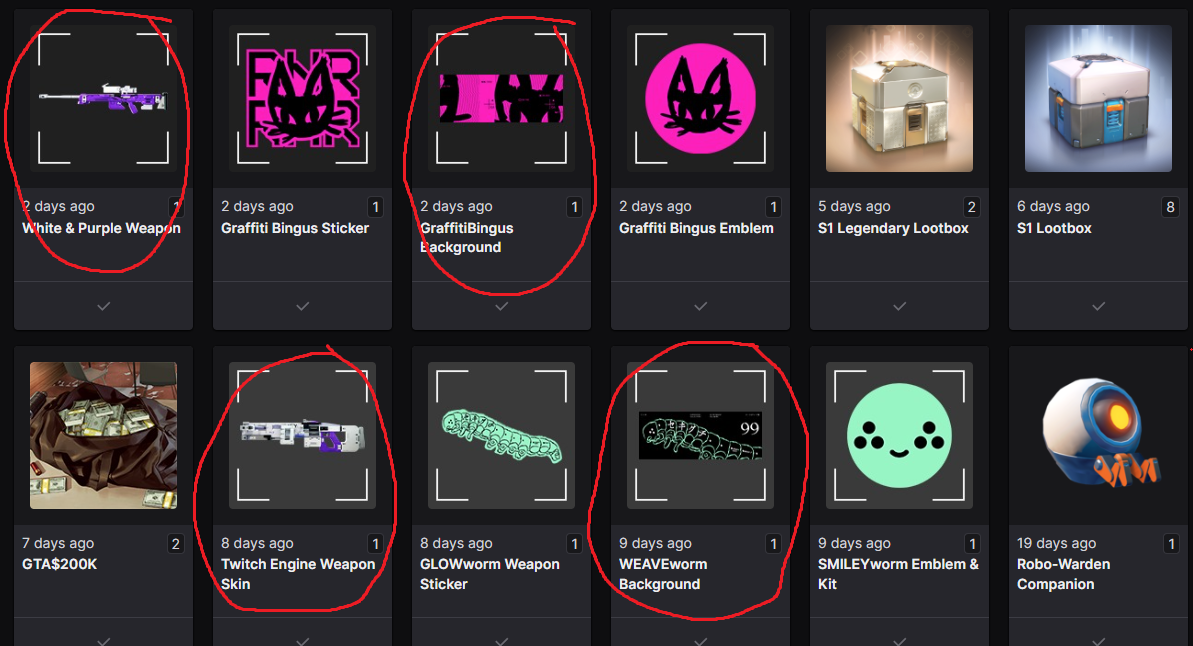 I have only received half of my items from the 2 twitch drop events that have occurred for marathon. I am only receiving Emblems and stickers, but not backgrounds and weapon skins. For reference, I am missing the items circled in red in the image below. Any info is greatly apricated.