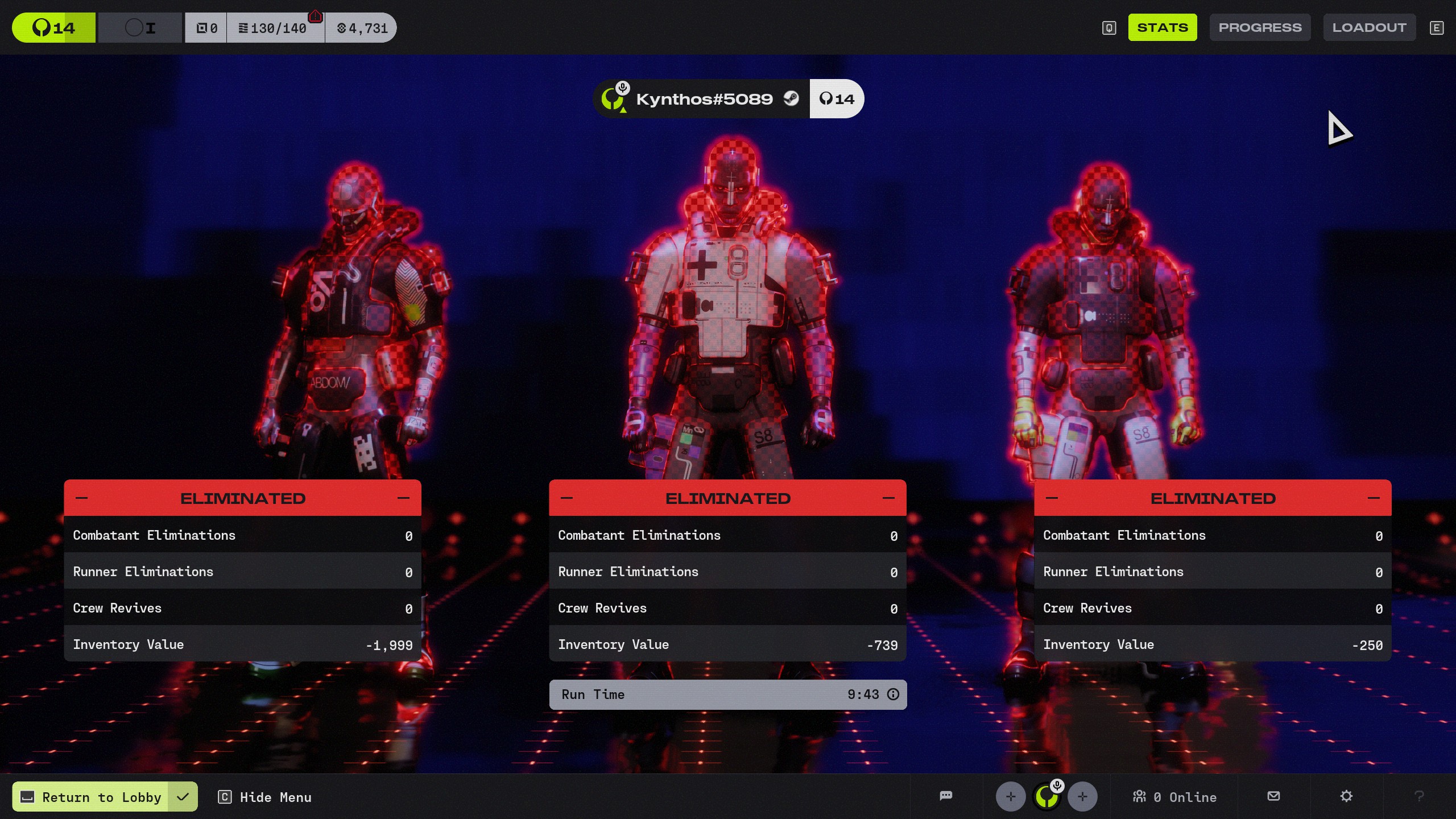 I got back into the game after a few hours and was met with the following exfil screen showing that I had no teammates, received no faction experience and lost all items I brought into the run. If these can be restored, please do.