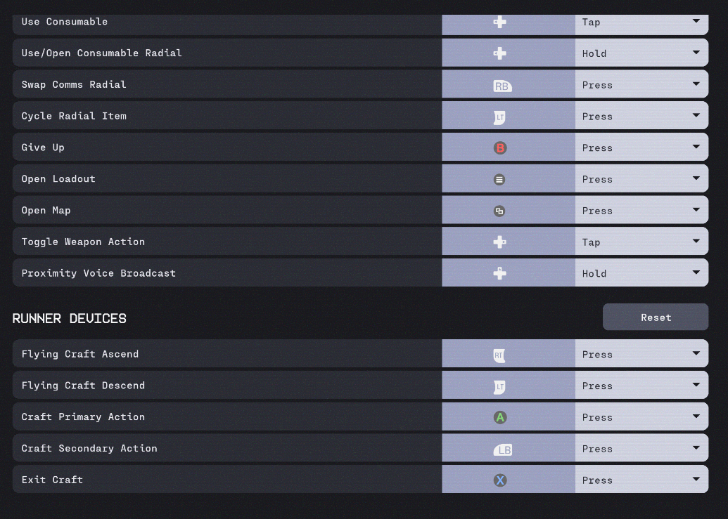 • I am having the same issue on Xbox. I have not changed any 'runner device' keybinds. However, I have changed multiple 'character' keybinds including 'RB'/'R1' to have multiple functions (which both functions are working perfectly as intended) I believe these keybind changes are likely the source of the issue, but I shouldnt have to go back to default keybinds for my drone to work. What I am noticing is there is no keybind setting for the drone's grapple ability (atleast I'm not seeing it.. tried changing both 'craft action' keybinds multiple times now with neither of them enabling me to use the drone's grapple) I attached screenshots of my current keybinds if that helps, but there is no video footage to show since the drone has never fired its grapple with my custom keybinds.