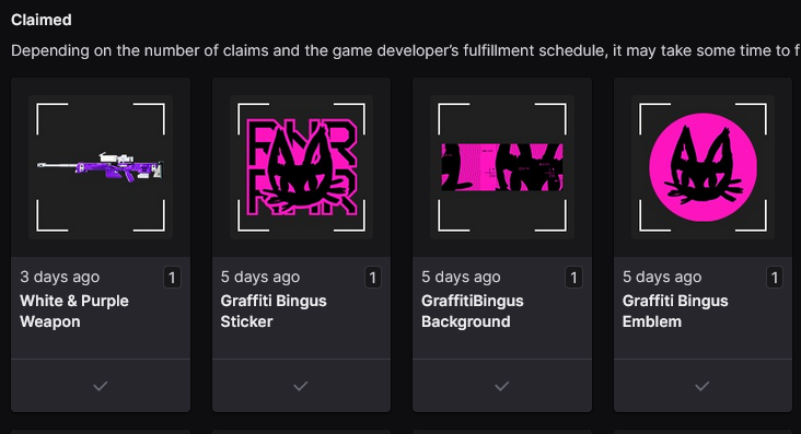 I watched and claimed the Twitch drops for the launch of Marathon, later realizing my Bungie was unlinked from my Twitch. I re-linked my Twitch account with my Bungie account, where I then received the "white and purple weapon" skin, but not the others. I wonder if my issue was that my accounts weren't linked originally that it isn't recognizing that I claimed the other drops. Is there any way I can receive the other three drops I am missing?