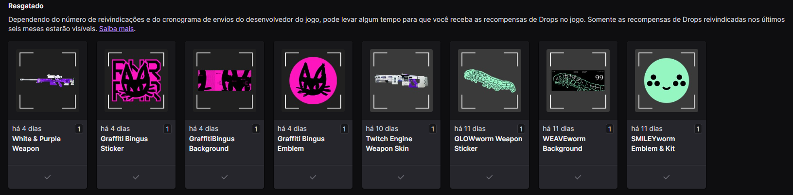 I managed to collect all the Twitch drops, but I still haven't received the WAVEworm background and Twitch Engine Weapon Skin from the server slam drops.