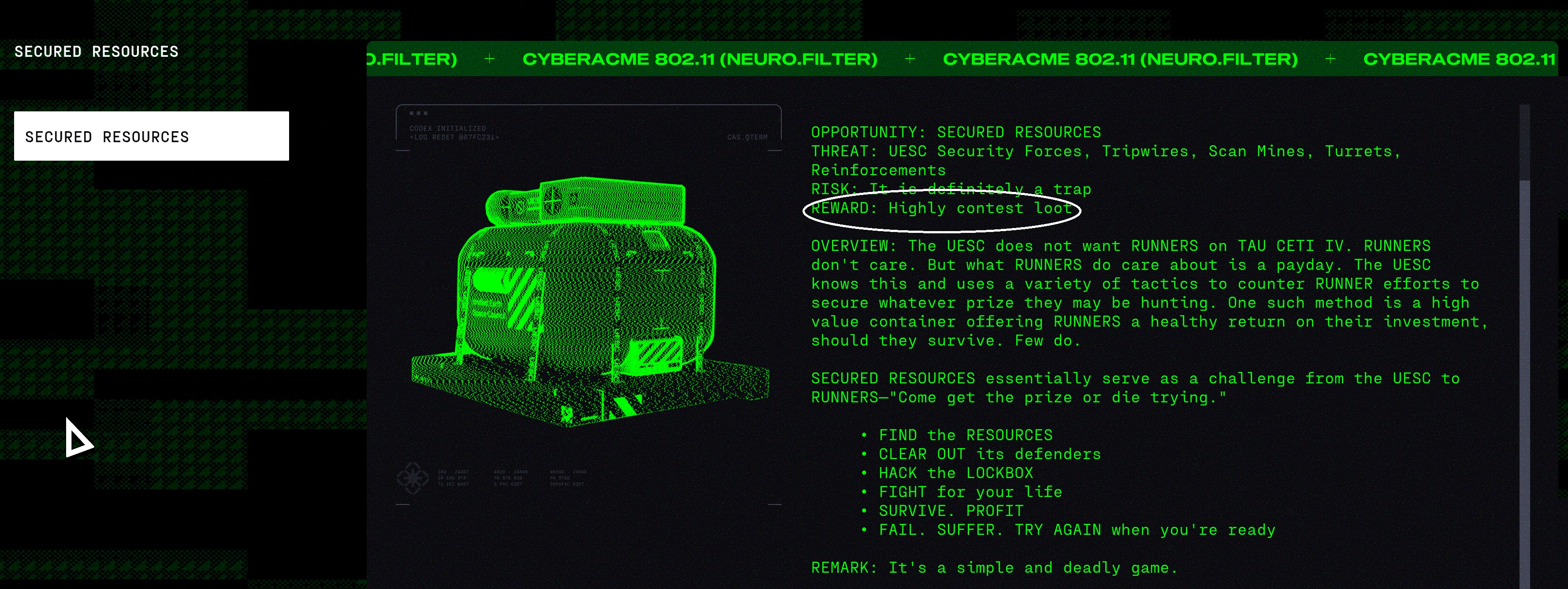 Should read " REWARD HIGHLY CONTESTED LOOT"