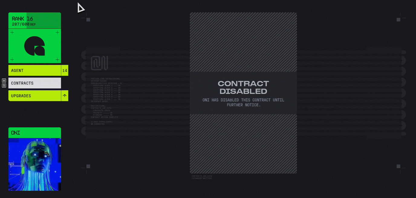 Description of Issue - While progressing contract; Can't Adapt: Can't Fight II, my ability to do standard contracts has been disabled. I had already completed all Cyac Priority Contracts. My Cyac rank is 16. I have tried restarting the game, it has persisted for 12h+ This seems to be a problem effecting multiple players over the last 24h.