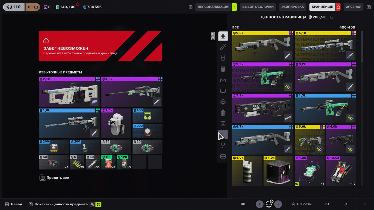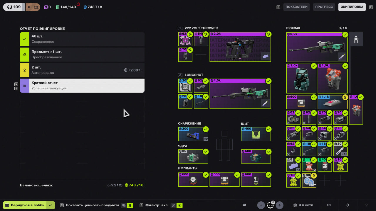 Extracting with a full inventory on Rook while having three purple backpacks equipped and a full vault results in lost items.