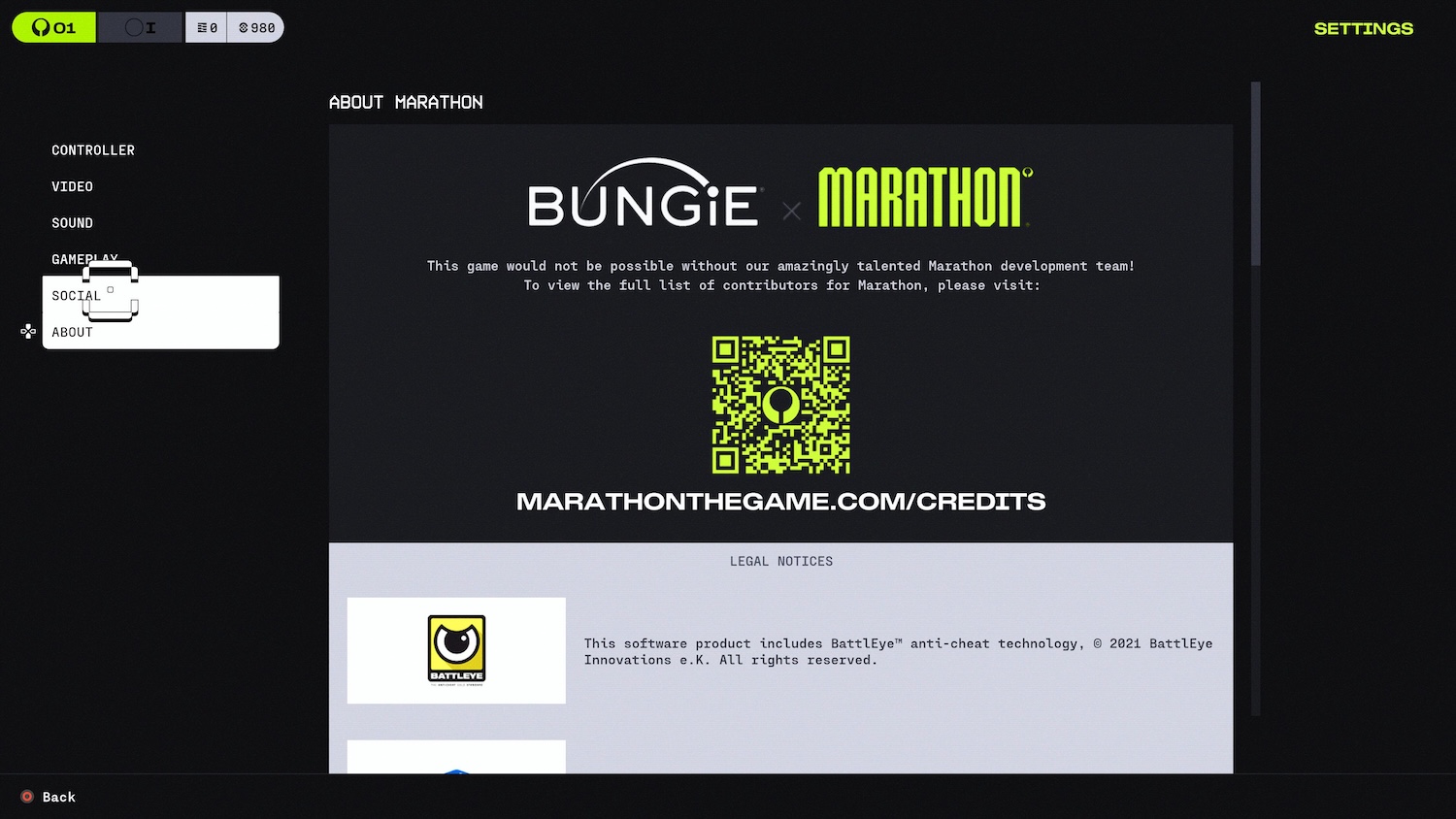 The QR code on the ABOUT MARATHON page leads to a page that doesn't exist on bungie.net