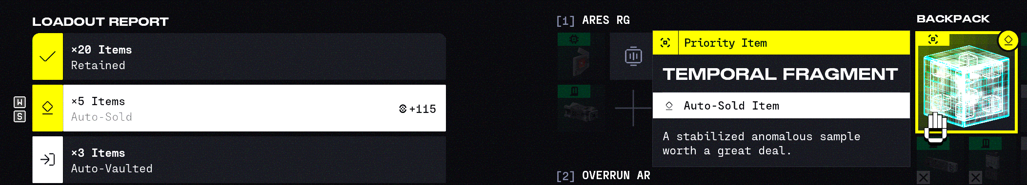 Temporal Fragment sells for zero credits at exfil