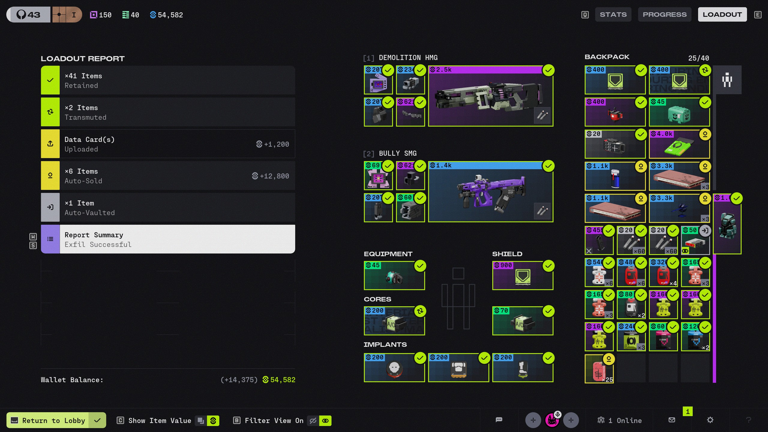 Missed credits of auto-sold items after exfil from Cryo Archive