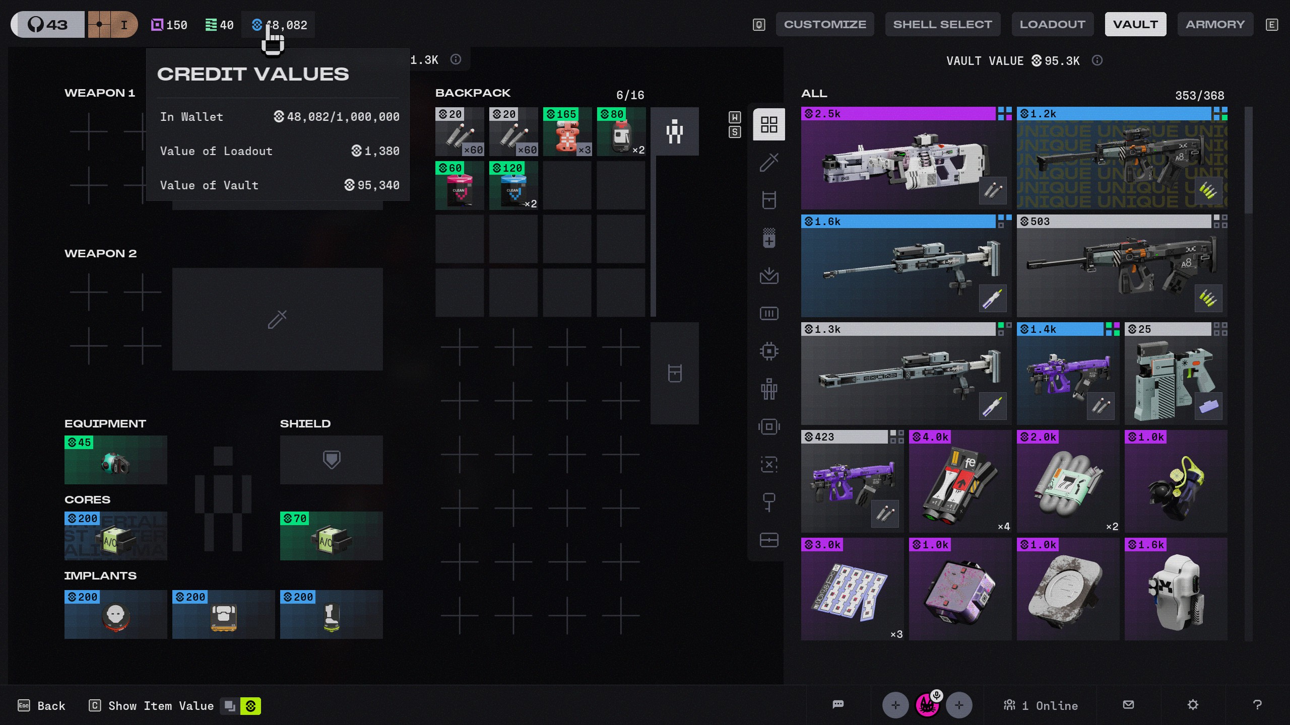 - Description of Issue - After successful exfil from Cryo Archive, valuable items were auto-sold and credits were counted, but on the vault screen total credits amount was less by 6500 credits. A screenshots are attached.